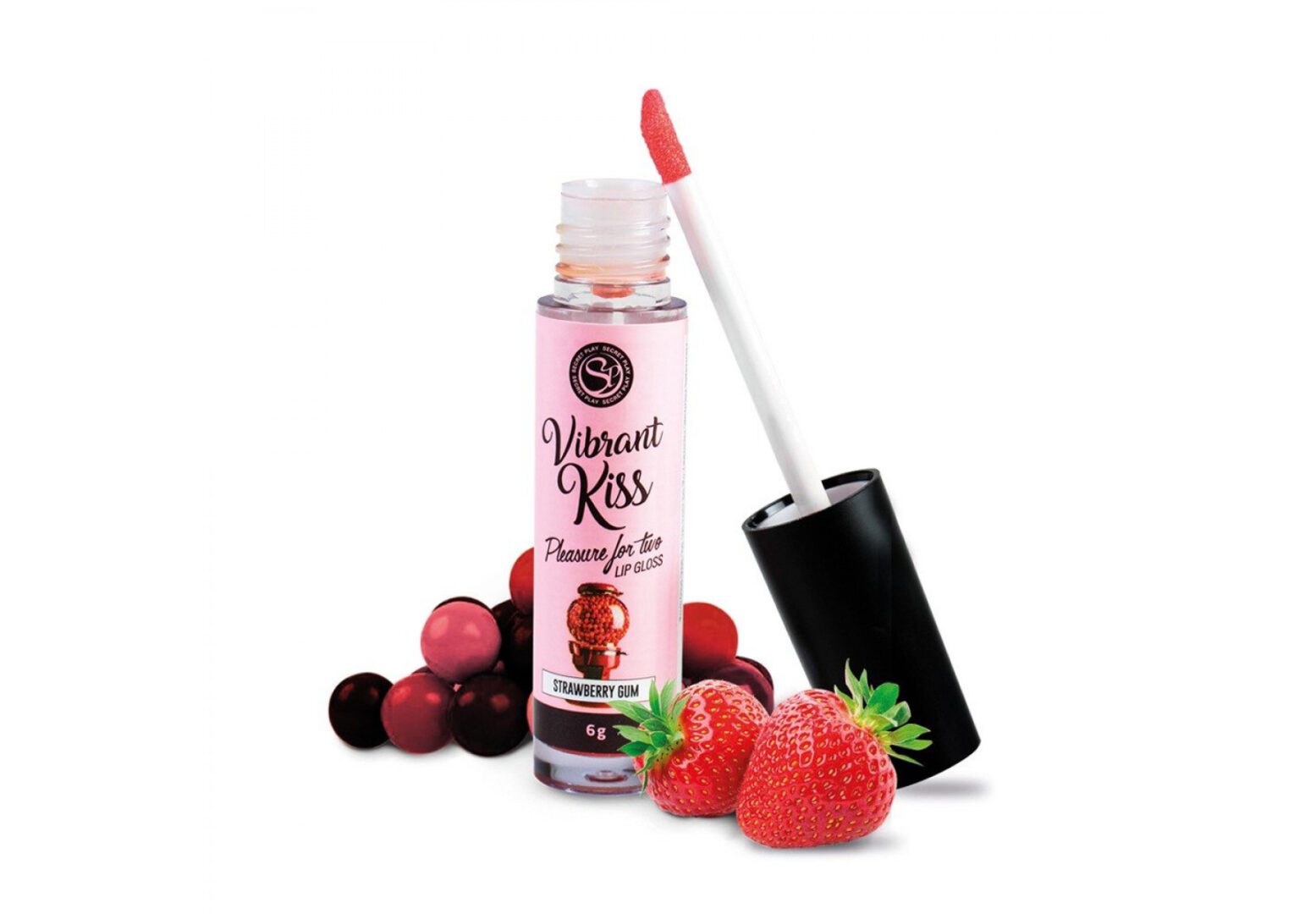 Διεγερτικό Τζελ Με Γεύση & Δόνηση – Secret Play Lip Gloss Vibrant Kiss Strawberry Gum 6gr