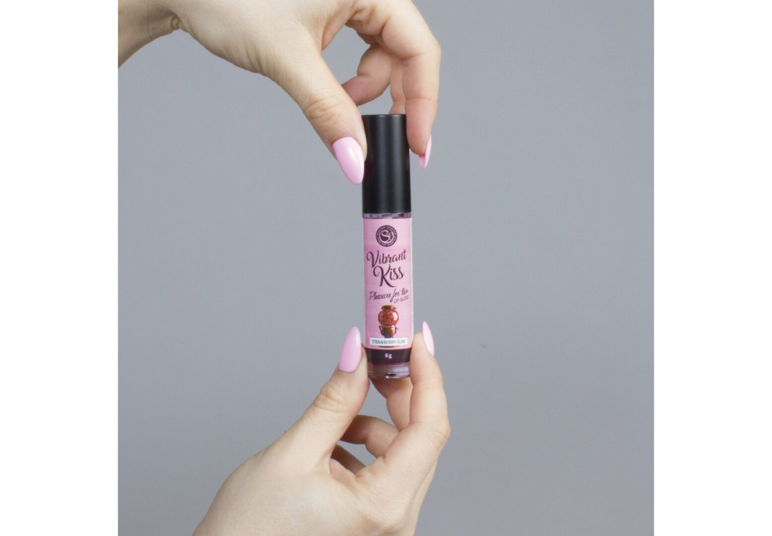 Με το lip gloss Vibrant Kiss Strawberry Gum, μπορείτε να ζήσετε αφάνταστες αισθήσεις ευχαρίστησης για εσάς και τους εραστές σας. Τα δονητικά του κύματα παράγουν ένα ευχάριστο μυρμήγκιασμα που συμβάλλει στην τόνωση των αισθήσεων και αυξάνει την ευαισθησία και την ευχαρίστηση. Μπορεί να χρησιμοποιηθεί ενώ κάνετε στοματικό σεξ ή απλώς για φιλιά. Απόλαυση για δύο.